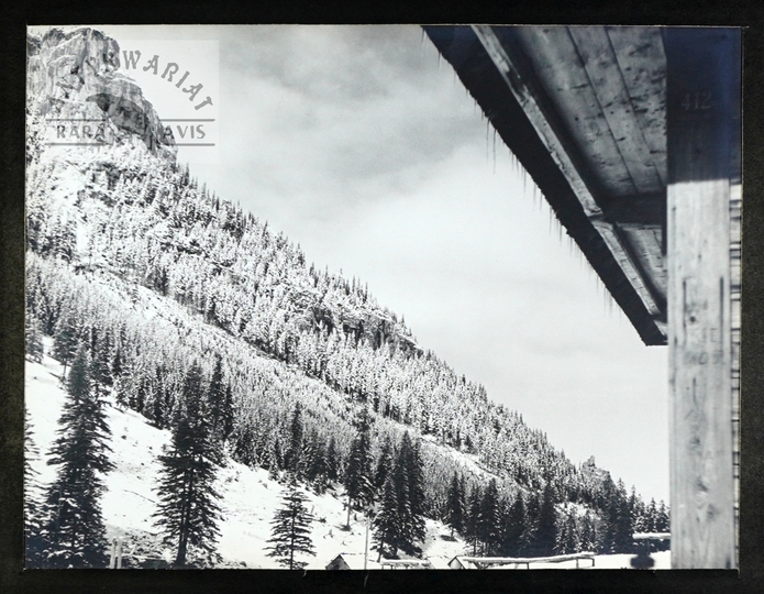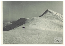 [GÓRY - Karpaty - Beskidy Wschodnie - Gorgany - szczyt Sywuli zimą - fotografia widokowa, sytuacyjna]. [l. 30. XX w.]. Fotografia form. 12,4x17,5 cm, autorstwa [Zygmunta Klemensiewicza].