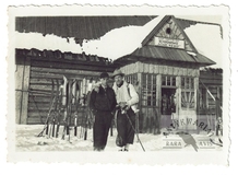 [GÓRY - Karpaty - Tatry - Jan Kiepura i Marta Eggerth na przejściu granicznym na Łysej Polanie - fotografia sytuacyjna]. [VII 1936]. Fotografia form. 8,5x10,8 cm.