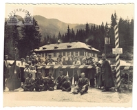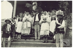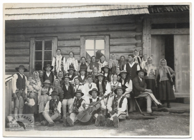[GÓRY - Karpaty - Tatry - wesele w Chochołowie - fotografia zbiorowa, pozowana]. 1937. Fotografia form. 11,5x16,5 cm, autorstwa Władysława Wachulskiego z Chochołowa.
