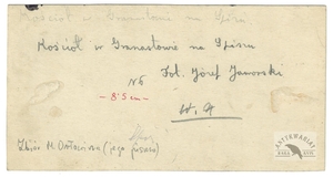 [GRANASTÓW, dziś Hraničné - cerkiew Niepokalanego Poczęcia Najświętszej Maryi Panny - fotografia widokowa]. [nie po 1913]. Fotografia form. 8,5x16,4 cm, autorstwa J[ózefa] Kościesza-Jaworskiego.