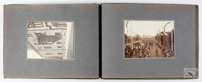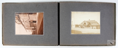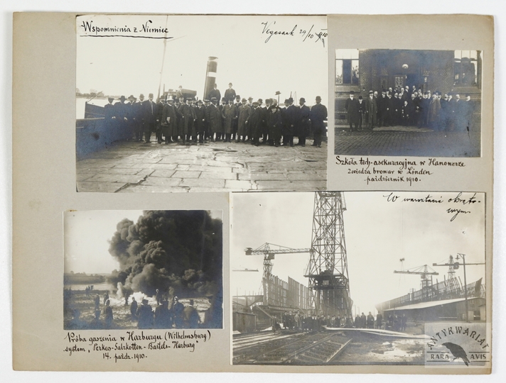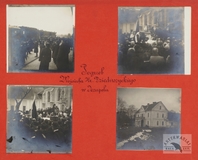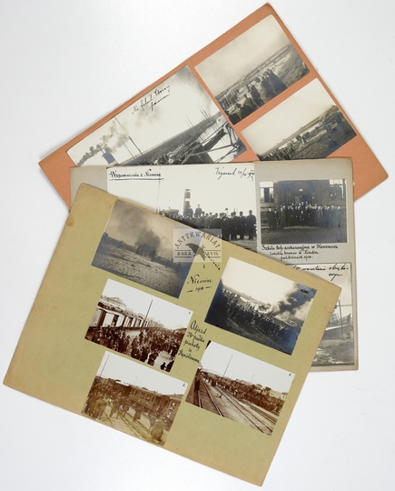 [przed I WOJNĄ - 24. pułk piechoty - odjazd ze Stanisławowa i wspomnienia z Niemiec - fotografie sytuacyjne]. [1910]. Zestaw 13 fotografii form. ca 8x10 cm, 12x17 cm, 8x11 cm na kartonach form. ca 25x32,5 cm.