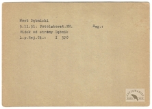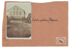 [KRESY - DELEJÓW - widok Szkołę Ludową im. Adama Asnyka - fotografia widokowa, sytuacyjna]. [pocz. XX w.]. Fotografia form. 8x5,5 cm na kartonie form. ca 10x14 cm.