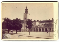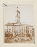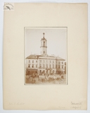 [KRESY - CZERNIOWCE - ratusz - fotografia widokowa, sytuacyjna - ujęcie w dużym formacie]. [2. poł. XIX w.]. Fotografia form. 19,4x14,6 cm na oryg. podkładzie form. 37,5x30 cm, autorstwa E[ngelberta] Richtera.