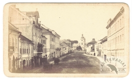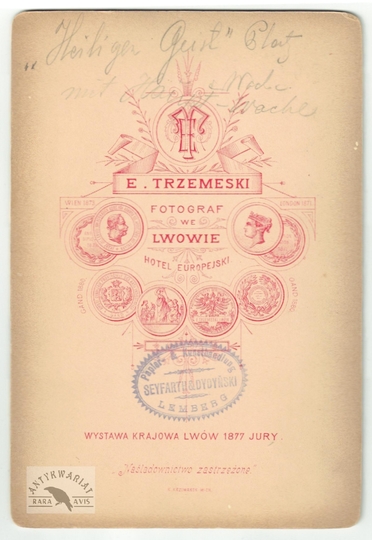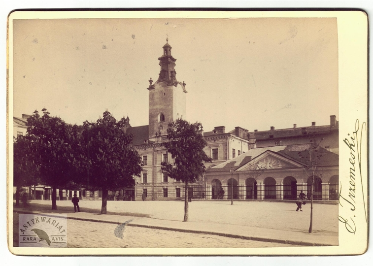 [LWÓW - plac św. Ducha - fotografia widokowa - ujęcie w formacie gabinetowym]. [l. 80. XIX w.]. Fotografia form. 10,3x14,7 cm na oryg. podkładzie form. 11x16,3 cm, autorstwa Edwarda Trzemeskiego we Lwowie.