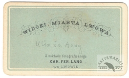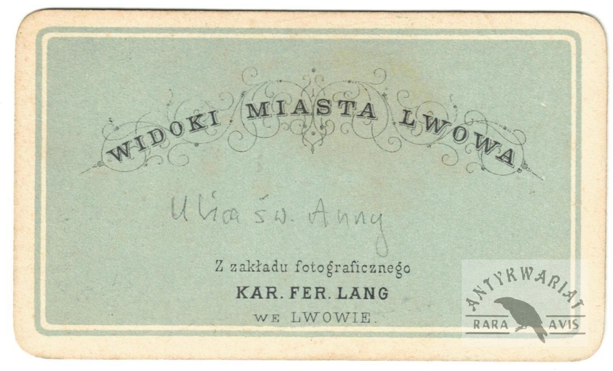 [LWÓW - ul. św. Anny - fotografia widokowa - ujęcie w formacie cdv]. [nie przed 1863, nie po 1870]. Fotografia form. 5,5x9,4 cm na oryg. podkładzie form. 6x10,2 cm, autorstwa Kar[ola] Ferd[ynanda] Langa we Lwowie.