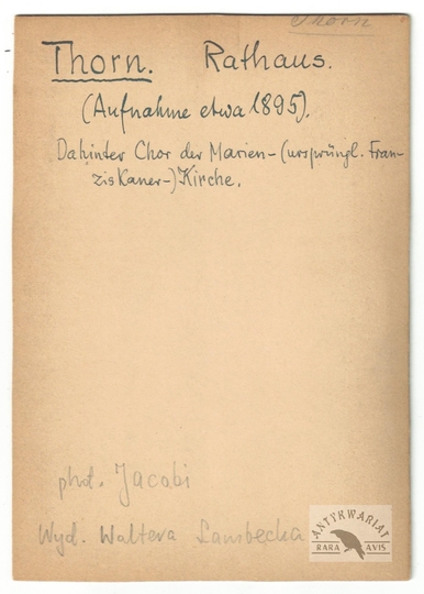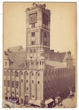 [TORUŃ - Ratusz Staromiejski - fotografia widokowa, sytuacyjna - ujęcie w formacie gabinetowym]. [ok. 1895]. Fotografia form. 14,9x10,1 cm na podkładzie form 14,9x10,4 cm, wykonane w [atelier Jacobi w Toruniu].