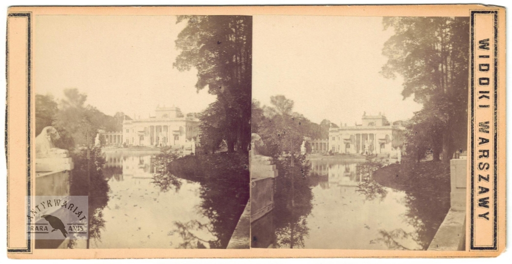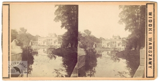 [WARSZAWA - Pałac w Łazienkach Królewskich - fotografia widokowa - stereoskopowa]. [1867]. Fotografia form. 8x7,5 cm razy dwa na oryg. podkładzie form. 8,7x17,2 cm, autorstwa Jana Mieczkowskiego w Warszawie.