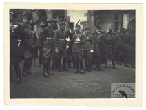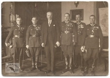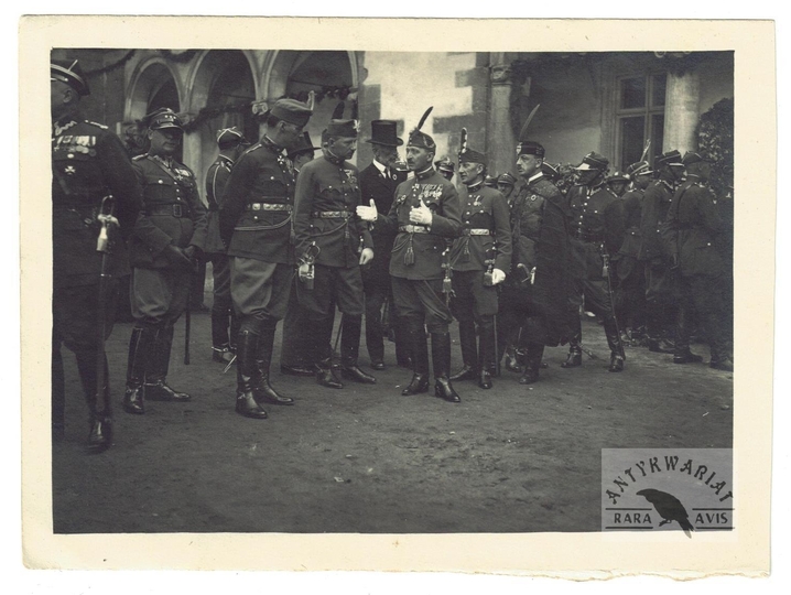 [MOŚCICKI Ignacy - delegacja dowódców pułków I dywizji Piechoty Legionów na audiencji u prezydenta RP na Zamku Królewskim w Warszawie - fotografia sytuacyjna]. [II 1930]. Fotografia form. 11,4x16,6 cm.