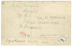 [WOJSKO - Legiony Polskie - Departament Wojskowy Naczelnego Komitetu Narodowego w Piotrkowie w 1916 - fotografia sytuacyjna]. [1916]. Fotografia form. 8,8x13,8 cm, nieznanego autorstwa.
