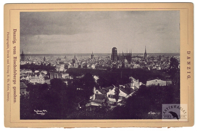 [GDAŃSK - panorama miasta z Biskupiej Górki - fotografia widokowa - ujęcie w formacie gabinetowym]. [1894]. Fotografia form. 9,4x13,8 cm na oryg. podkładzie form. 10,8x16,5 cm, autorstwa R. Th[eodora] Kuhna.
