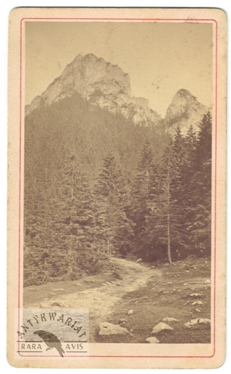 [GÓRY - Karpaty - Tatry - Wąwóz Kraków - fotografia widokowa - ujęcie w formacie cdv]. [l. 80. XIX w.]. Fotografia form. 9,3x5,5 cm na oryg. podkładzie form. 10,5x6,5 cm, autorstwa A[wita] Szuberta w Krakowie i Szczawnicy.