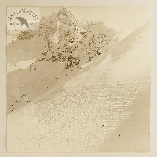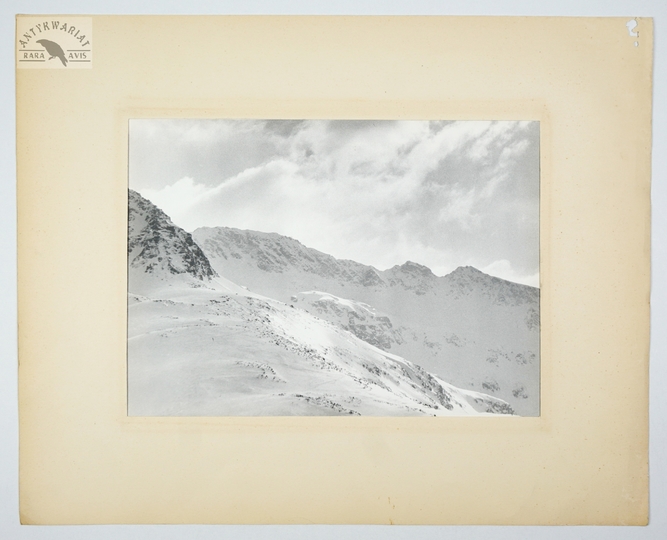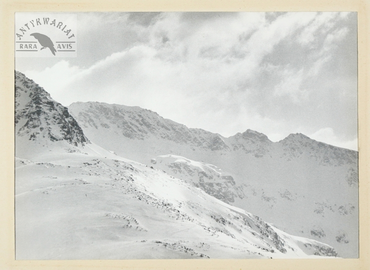 [GÓRY - Karpaty - Tatry - widok zimą od Doliny Pięciu Stawów Polskich na szczyt Miedziane, Szpiglasową Przełęcz i Szpiglasowy Wierch - fotografia artystyczna]. [2. poł. XX w.]. Fotografia form. ca 30x40 cm, autorstwa Jana Weselika.