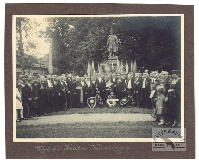 [KRAKÓW - Bractwo Kurkowe - fotografia zbiorowa]. [nie przed 1919]. Fotografia form. 8,2x11,1 cm na podkładzie form. ca 10x12 cm.