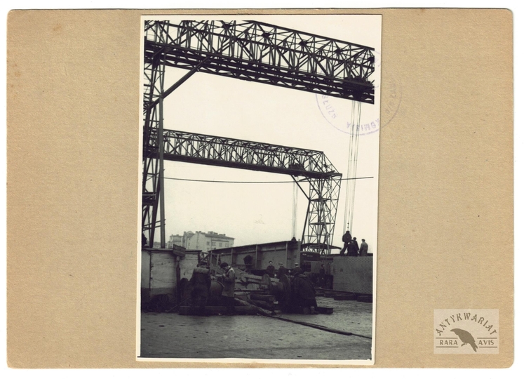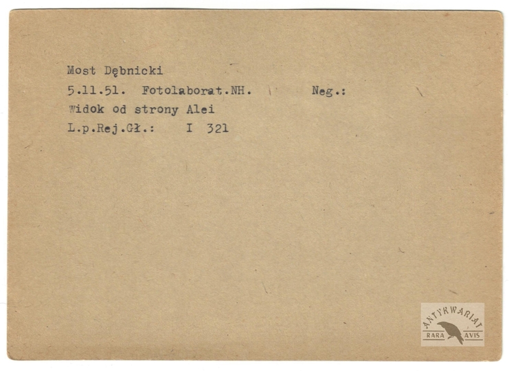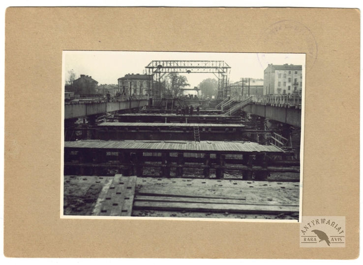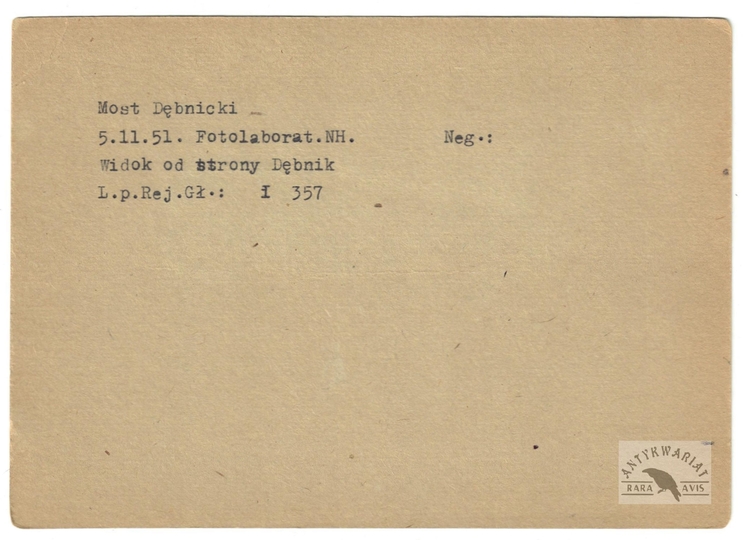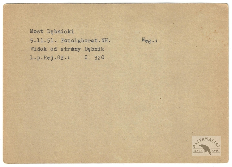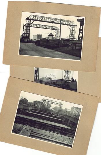 [KRAKÓW - odbudowa Mostu Dębnickiego - fotografie sytuacyjne]. [5 XI 1951]. Zestaw 3 fotografii form. ca 8x11,5 cm, 11,5x8 cm na kartonowych podkładach form. 12x17 cm.