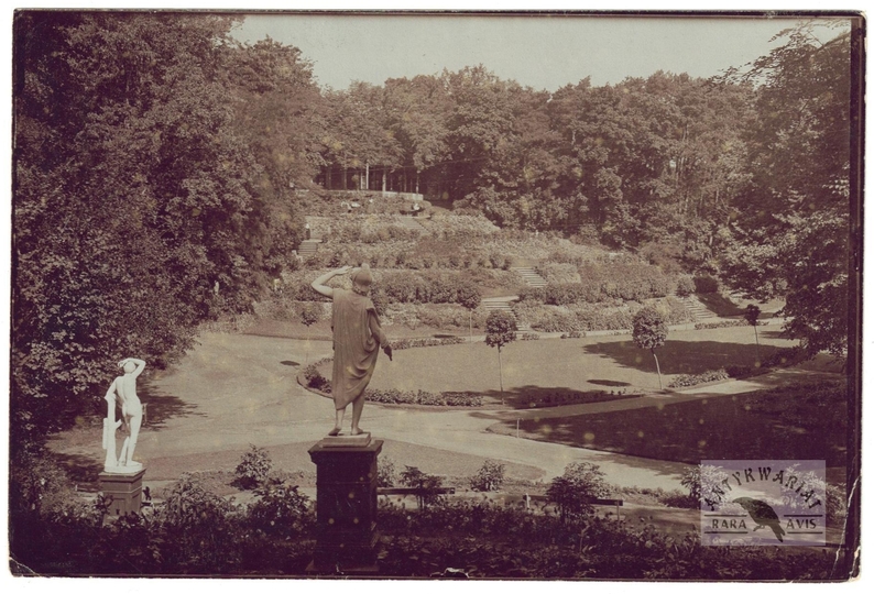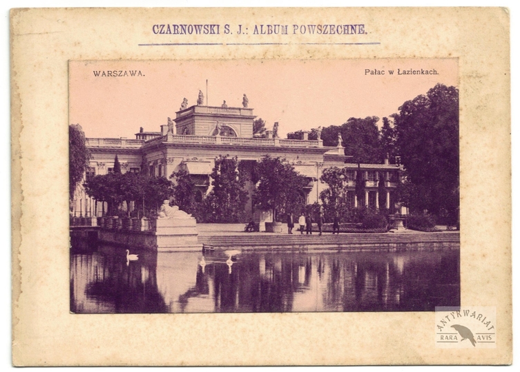 [WARSZAWA - pałac w Łazienkach - fotografia widokowa]. [1900?]. Fotografia form. 9x13,9 cm na oryg. podkładzie form. 13,8x17,8 cm.
