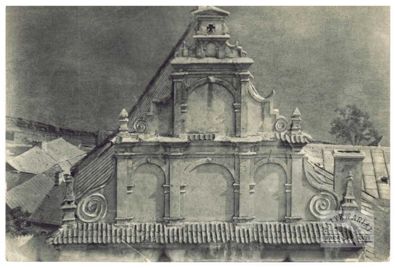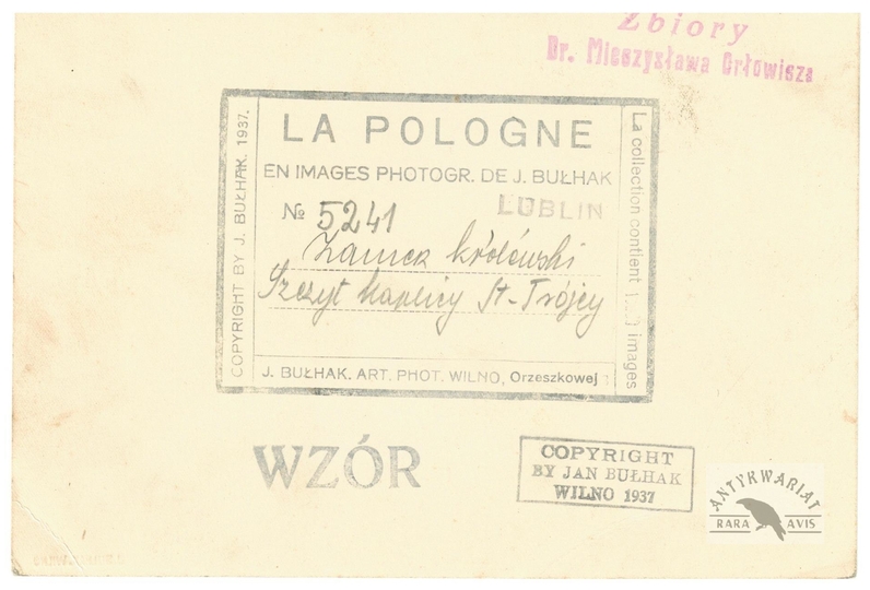 [LUBLIN - widok na szczyt kaplicy Trójcy Świętej przy Zamku Lubelskim - fotografia widokowa]. [1921/1937]. Fotografia form. 10,8x15,7 cm, autorstwa Jana Bułhaka.