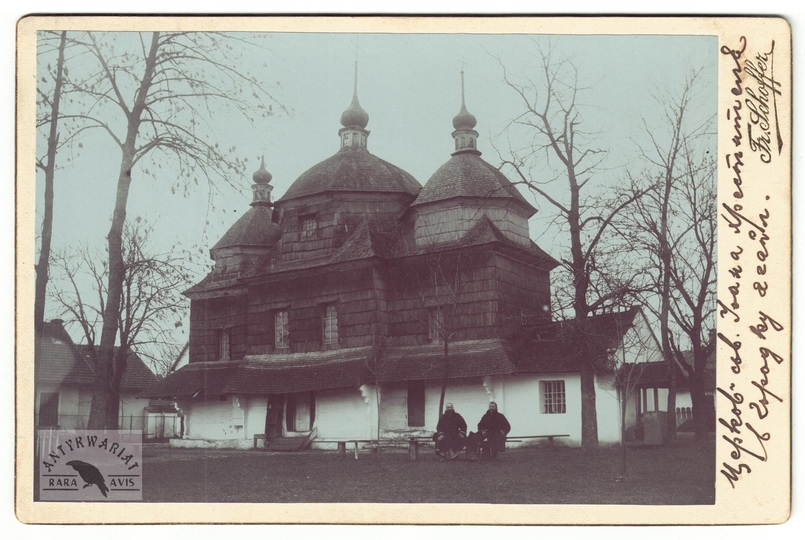 [KRESY - GRÓDEK Jagielloński - cerkiew św. Jana Chrzciciela - fotografia widokowa, sytuacyjna - ujęcie w formacie gabinetowym]. [1. poł. XX w.]. Fotografia form. 10x14,4 cm na oryg. podkładzie form. 10,8x16,5 cm, autorstwa Fr[anciszka] Schoffera w Gródku Jagiellońskim.