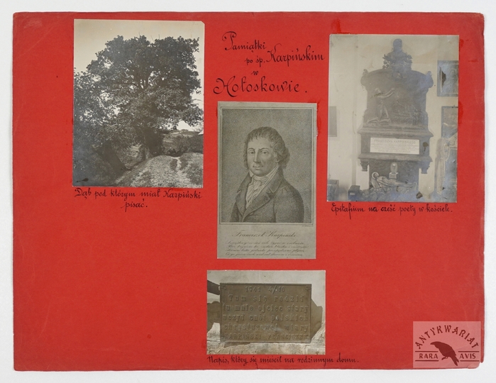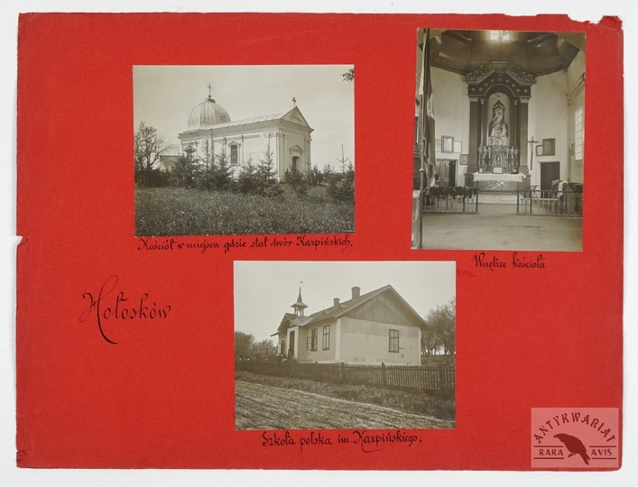 [KRESY - HOŁOSKÓW - miejsca i pamiątki związane z osobą Franciszka Karpińskiego - fotografie widokowe, sytuacyjne]. [pocz. XX w.]. Zestaw 7 fotografii form. ca 9x12 cm, 11x7 cm, 6x8 cm na kartonach form. ca 25x33 cm.