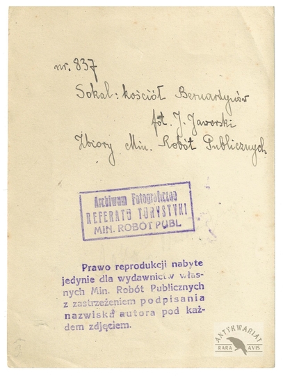 [KRESY - SOKAL - Klasztor O.O. Bernardynów - fotografia widokowa]. [nie po 1913]. Fotografia form. 15,8x11,7 cm, autorstwa J[ózefa] Kościesza-Jaworskiego.