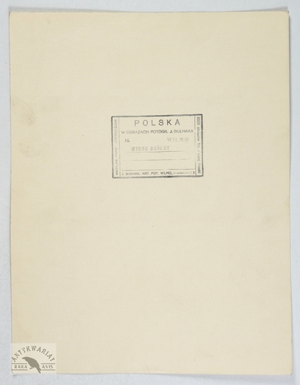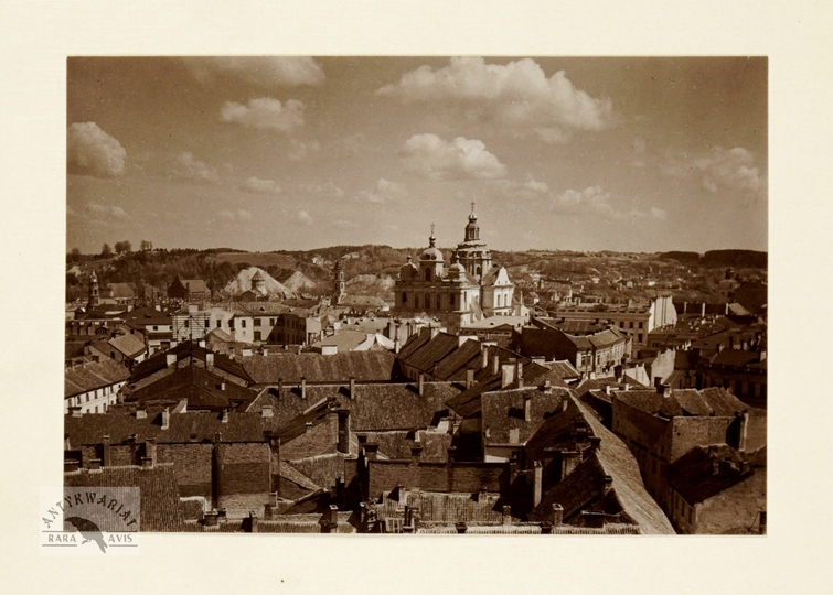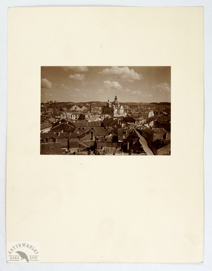 [KRESY - WILNO - fragment panoramy miasta - fotografia widokowa]. [l. 30. XX w.]. Fotografia form. 11,3x16,7 cm na oryg. podkładzie form. 32,2x24,8 cm, autorstwa Jana Bułhaka w Wilnie.