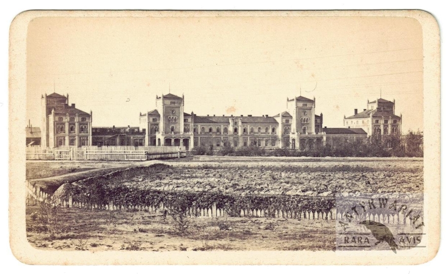 [LWÓW - Stary Dworzec Lwowski - fotografia widokowa - ujęcie w formacie cdv]. [nie przed 1863, nie po 1870]. Fotografia form. 5,5x9,3 cm na oryg. podkładzie form. 6x10,2 cm, autorstwa Kar[ola] Ferd[ynanda] Langa we Lwowie.