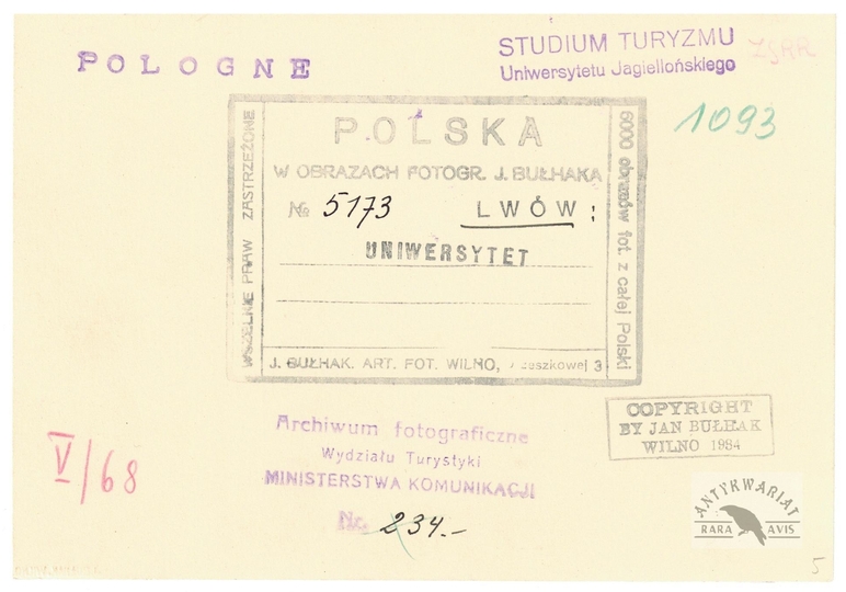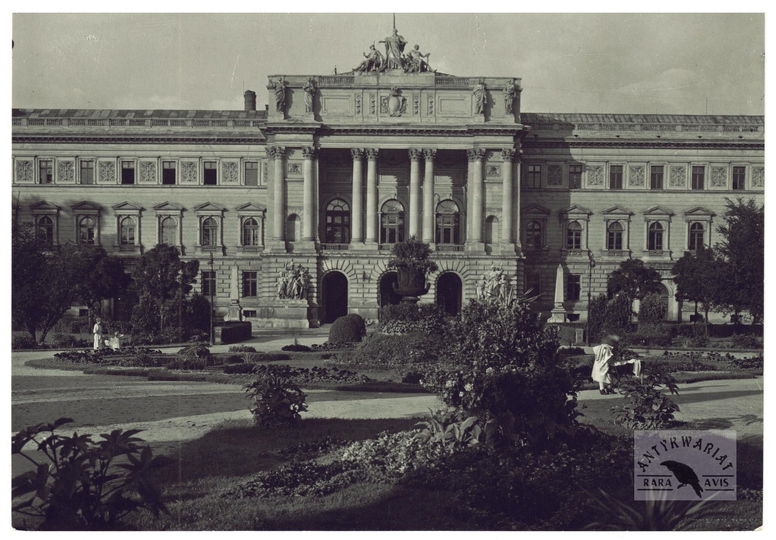 [LWÓW - gmach główny Uniwersytetu Jana Kazimierza - fotografia widokowa]. [1934]. Fotografia form. 11,4x16,1 cm, autorstwa Jana Bułhaka w Wilnie.