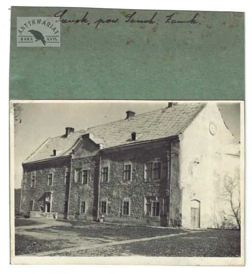 [SANOK - Zamek królewski - fotografia widokowa]. [1. poł. XX w.]. Fotografia form. 8,3x11,8 na kartonowym podkładzie form. 13x11,8 cm, nieznanego autorstwa.