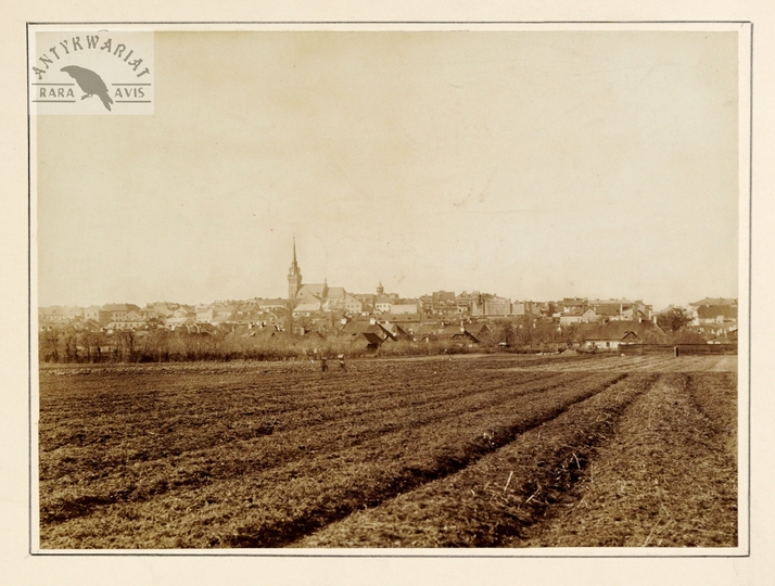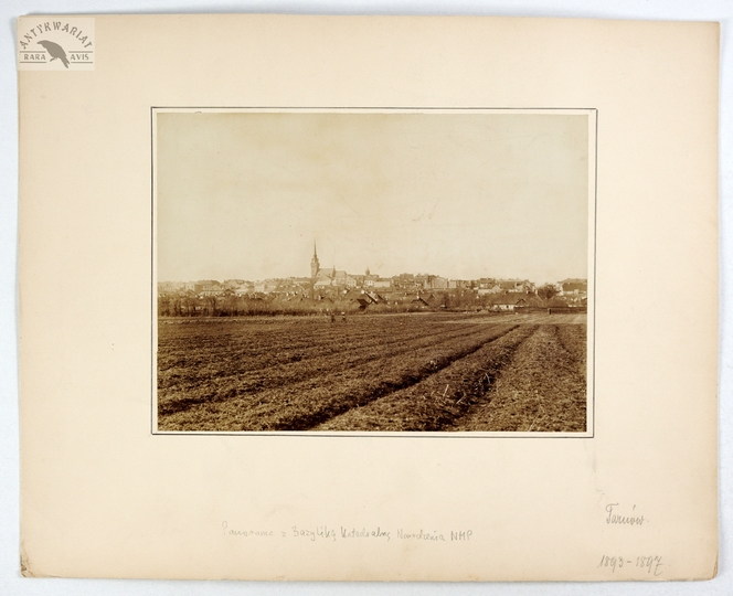 [TARNÓW - fragment panoramy miasta - fotografia widokowa w dużym formacie]. [koniec XIX w.]. Fotografia form. ca 17x23 cm na oryg. podkładzie form. ca 29,5x37 cm.