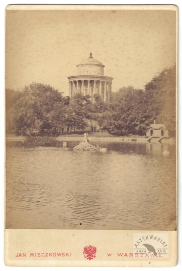 [WARSZAWA - Wodozbiór w Ogrodzie Saskim - fotografia widokowa - ujęcie w formacie gabinetowym]. [l. 70. XIX w.]. Fotografia form. 13,6x10,6 cm na oryg. podkładzie form. 16,3x10,8 cm, autorstwa Jana Mieczkowskiego w Warszawie.