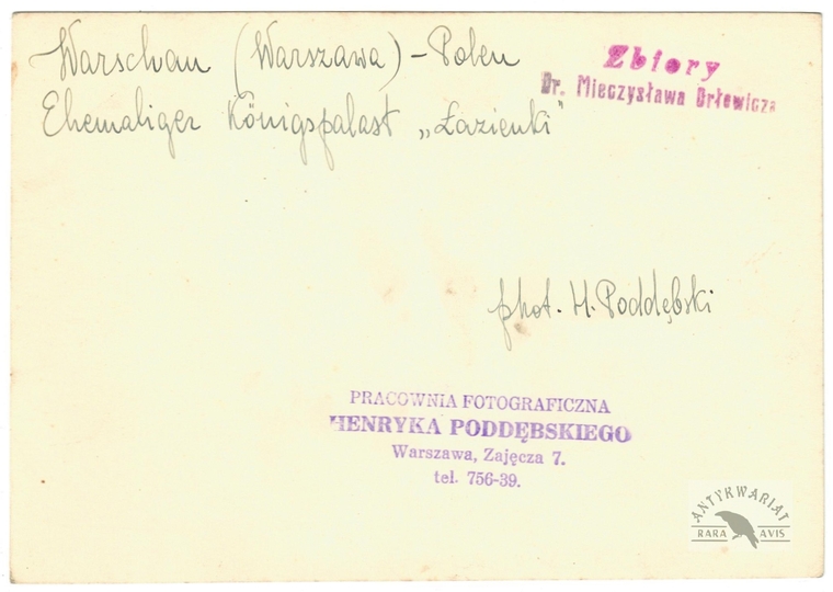 [WARSZAWA - pałac w Łazienkach - fotografia widokowa]. [l. 30. XX w.]. Fotografia form. 12x17 cm, autorstwa Henryka Poddębskiego.