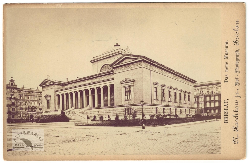 [WROCŁAW - gmach Schlesisches Museum für bildende Künste in Breslau - fotografia widokowa - ujęcie w formacie gabinetowym]. [nie przed 1880, nie po 1909]. Fotografia form. 10x14,8 cm na oryg. podkładzie form. 10,8x16,7 cm, autorstwa N[atana] Raschkowa.
