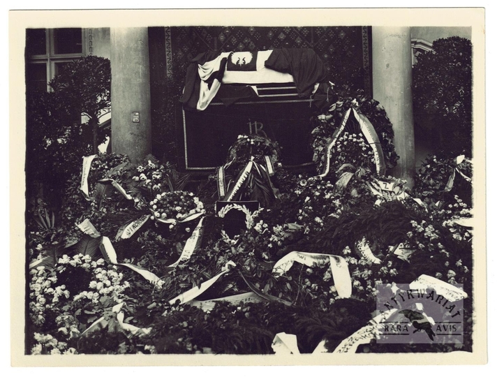 [PIŁSUDSKI Józef - żałoba narodowa - fotomontaż]. [1935]. Fotografia form. 23,3x16,7 cm, wykonana przez Produkcję Filmową Bracia Karaś w Krakowie.