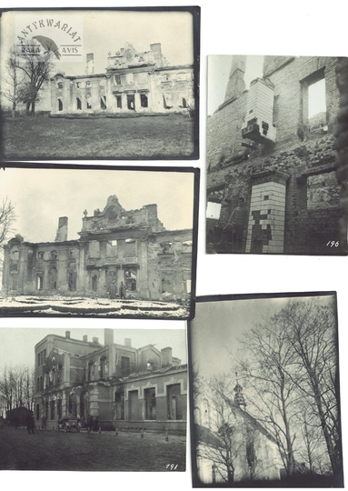 [KRESY - MARIAMPOL - pałac Jabłonowskich i inne - fotografie widokowe, sytuacyjne]. [nie po 1915]. Zestaw 4 fotografii form. ca 9x12 cm, 7x10 cm na kartonie form. ca 22x31,5 cm.