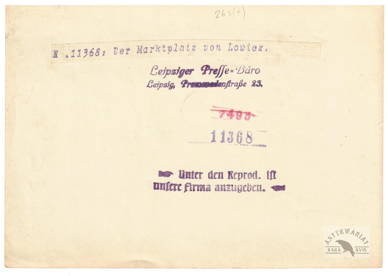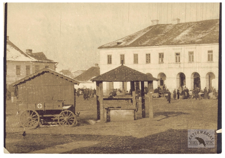 [I WOJNA św. - rynek w Łowiczu - fotografia prasowa]. [1914/1918]. Fotografia form. 12,7x17,8 cm, wykonana na zlecenie Lipskiego Biura Prasowego.