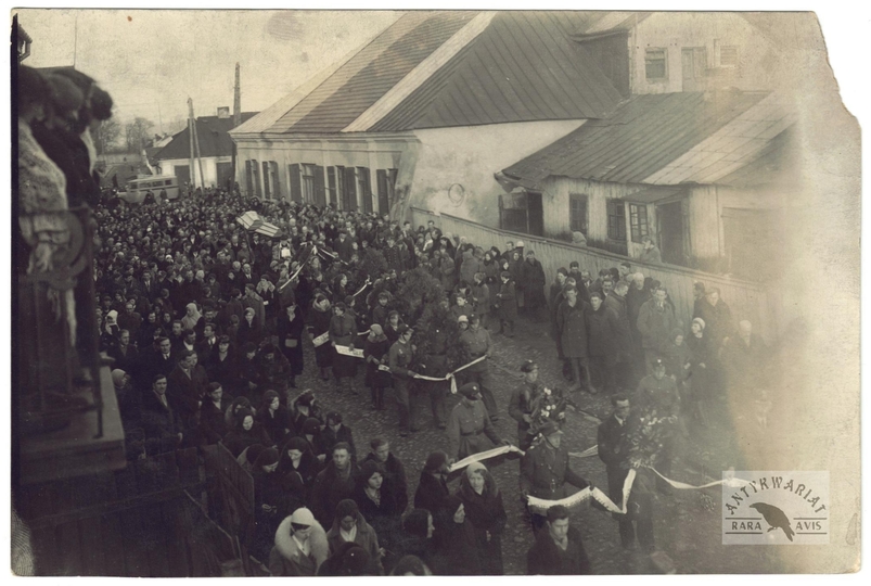 [WOJSKO Polskie - Legiony - pogrzeb legionistów w Lubartowie - fotografia sytuacyjna]. [1 poł. XX w.]. Fotografia form. 11,5x17,3 cm, nieznanego autorstwa.