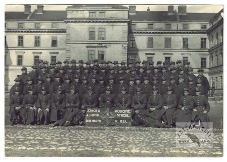 [WOJSKO Polskie - Szkoła Podoficerska 4 Kompanii Strzelców - fotografia zbiorowa]. [2 III 1939]. Fotografia form. 9x13 cm, nieznanego autorstwa.