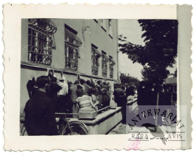 [II WOJNA św. - łapanka - fotografia sytuacyjna]. [pocz. l. 40. XX w.]. Fotografia form. 5,4x6,8 cm, nieznanego autorstwa.