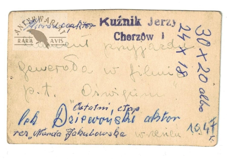[II WOJNA św. - kadr z filmu "Ostatni etap" - fotografia sytuacyjna]. [1947]. Fotografia form. 5,4x8,5 cm.