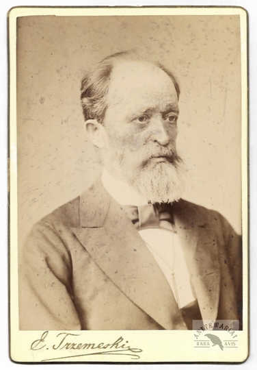 [FOTOGRAFIA portretowa - mężczyzna - ujęcie w formacie gabinetowym]. [nie przed 1877]. Fotografia form. 14,4x10,3 cm na podkładzie form. 16,5x11,1cm, autorstwa Edwarda Trzemeskiego we Lwowie.