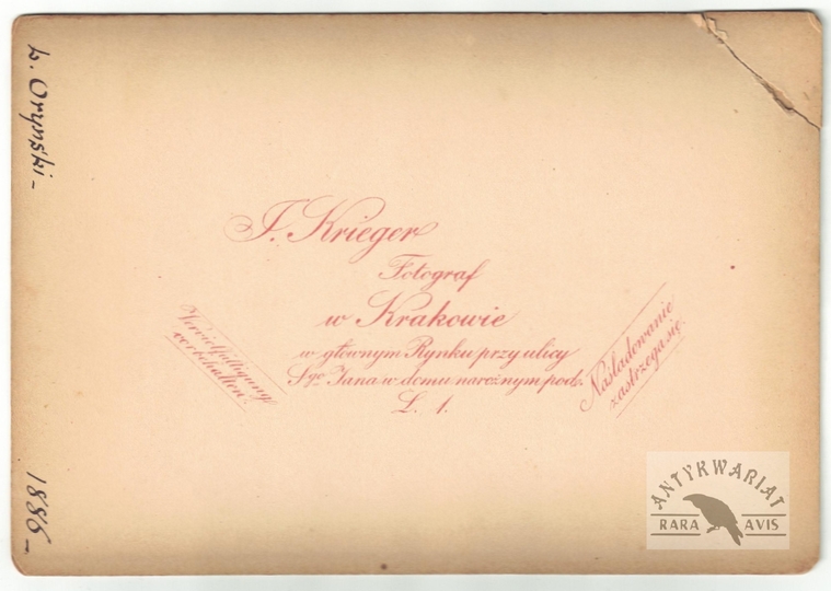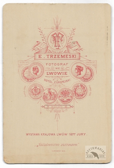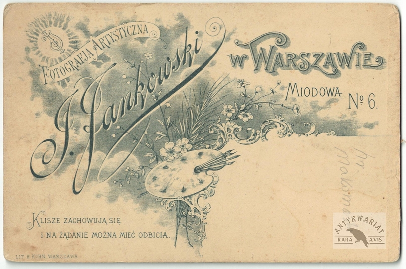 [URUSKI Antoni - fotografia portretowa - ujęcie w formacie cdv]. [pocz. XX w.]. Fotografia form. 9x5,6 cm na kartonowym podkład form. ca 11,5x8 cm.