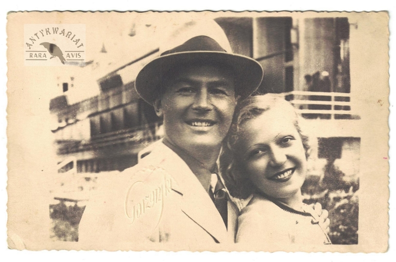[KIEPURA Jan i EGGERTH Marta - fotografia portretowa, pozowana]. [1937]. Fotografia pocztówkowa form. 8,5x13,5 cm, wykonana przez Zygmunta Garzyńskiego z Krynicy.