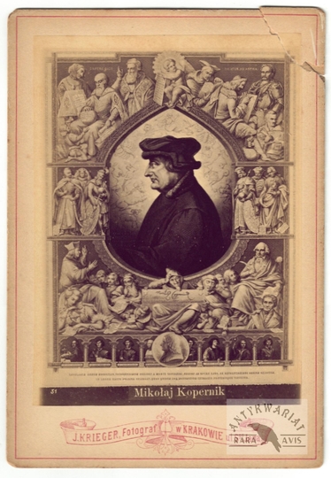 [KOPERNIK Mikołaj (w rzeczywistości Johann Stöffler) - fotografia portretowa - ujęcie w formacie gabinetowym]. [1843?/l. 80. XIX w.]. Fotografia form. 13,2x9,6 cm na oryg. podkładzie form. 16,5x11,4 cm, wykonana w atelier Ignacego Kriegera w Krakowie.