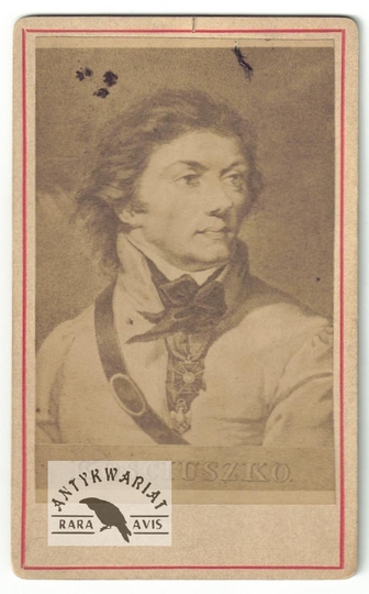[KOŚCIUSZKO Tadeusz - fotografia portretowa - ujęcie w formacie cdv]. [l. 90. XIX w.]. Fotografia form. 8,2x5,3 cm na oryg. podkładzie form. 9,8x6,1 cm, wykonana najprawdopodobniej w atelier Ignacego Kriegera w Krakowie.
