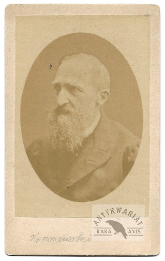 [KRASZEWSKI Józef Ignacy - fotografia portretowa - ujęcie w formacie cdv]. [2. poł. XIX w.]. Fotografia form. 8,2x5,5 cm na oryg. podkładzie form. 10,2x6,3 cm, nieznanego autorstwa.