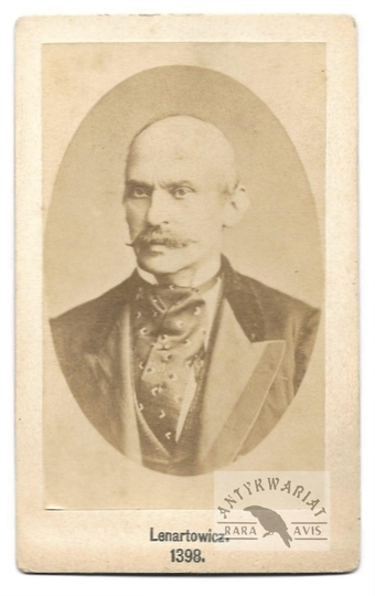 [LENARTOWICZ Teofil - fotografia portretowa - ujęcie w formacie cdv]. [l. 60./70. XIX w.]. Fotografia w owalu form. 8,6x5,2 cm na oryg. podkładzie form. 10,3x6,4 cm, nieznanego autorstwa.