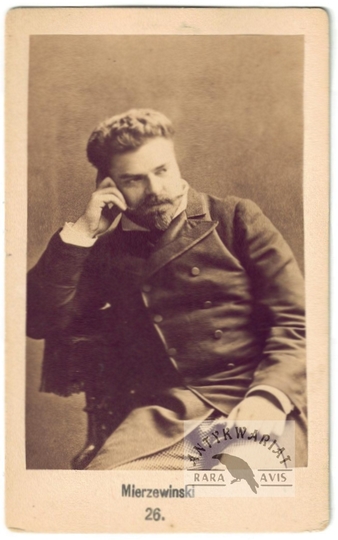 [MIERZWIŃSKI Władysław - fotografia portretowa - ujęcie w formacie cdv]. [l. 70//80. XIX w.]. Fotografia form. 8,5x5,4 cm na oryg. podkładzie form. 10,3x6,4 cm, nieznanego autorstwa.