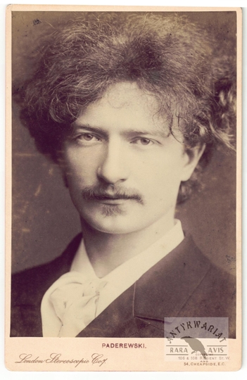 [PADEREWSKI Ignacy Jan - fotografia portretowa - ujęcie w formacie gabinetowym]. [ok. 1892]. Fotografia form. 14,7x10,2 cm na oryg. podkładzie form. 16,6x10,7 cm, wykonana przez London Stereoscopic & Photographic Company.