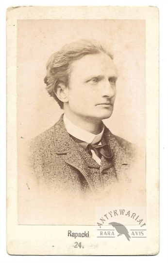 [RAPACKI Wincenty - fotografia portretowa - ujęcie w formacie cdv]. [l. 90. XIX w.?]. Fotografia form. 8,4x5,3 cm na oryg. podkładzie form. 10,3x6,4 cm, nieznanego autorstwa.