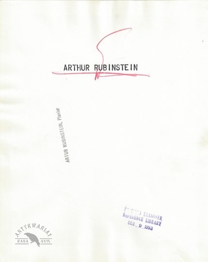 [RUBINSTEIN Artur - fotografia portretowa, sytuacyjna]. [l. 40. XX w./1953]. Fotografia form. 20,6x25,5 cm.