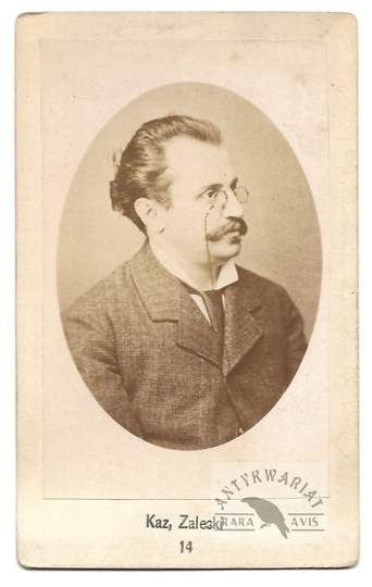 [ZALEWSKI Kazimierz - fotografia portretowa - ujęcie w formacie cdv]. [l. 80. XIX w.]. Fotografia w owalu form. 8,5x5,3 cm na oryg. podkładzie form. 10,3x6,4 cm, nieznanego autorstwa.